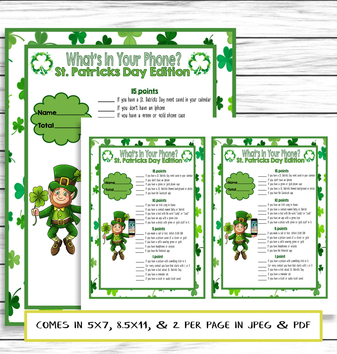 Source : fivepointscolumbia.comSaint Patricks Day Whats In Your Phone Game, St Patricks Day Party